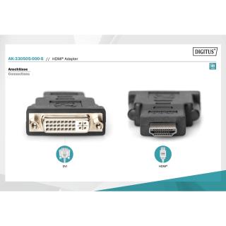 Adapter DIGITUS HDMI FHD 1080p 60Hz Typ HDMI A/DVI-I (24+5) M/Ż czarny