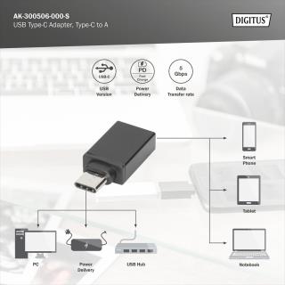 Adapter DIGITUS USB 3.0 SuperSpeed Typ USB C/USB A M/Ż czarny
