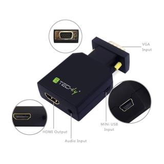 Adapter Techly IDATA VGA-HDMINI VGA+Audio Jack 3,5mm na HDMI 1080p