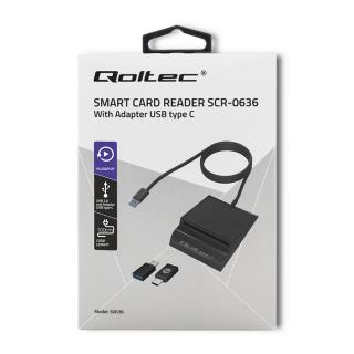 Czytnik kart chipowych ID Qoltec SCR-0636 | USB 2.0 + adapter USB-C