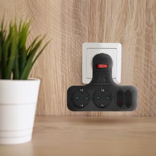 Gniazdko prądowe Maclean MCE224 G/B, poczwórne z wyłącznikiem, nóżka stabilizującą, typu schuko, 2x2.5A, 2x16A