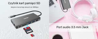 - Port wejścia/wyjścia minijack 3,5 mm wspiera 48 k/Hz z 16-bitowym próbkow.