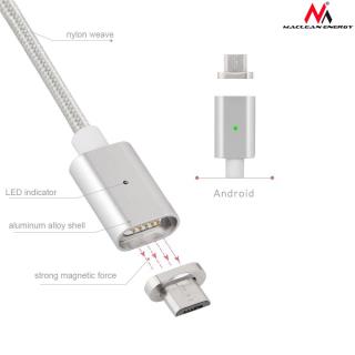 Kabel USB 2.0 Maclean MCE160 USB A (M) - Micro USB B (M) magnetyczny, Quick & Fast Charge, srebrny, 1m