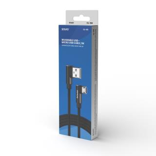 Kabel USB SAVIO CL-161, USB A (M) – Micro USB (M), 1m, kątowy, dwustronny, oplot nylonowy