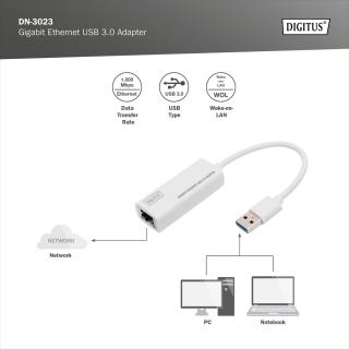 Karta sieciowa DIGITUS DN-3023 USB > RJ45 100/1000 Mbps