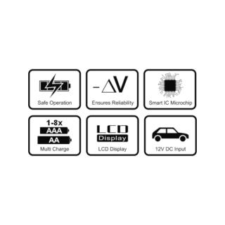 - Prąd ładowania: AA 8x 500 mA max, AAA 8x 250 mA max