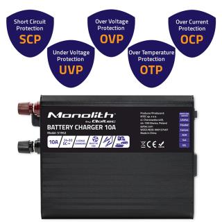 Ładowarka inteligentna Qoltec Monolith do akumulatorów LiFePO4 AGM GEL SLA | 10A | 24V