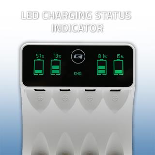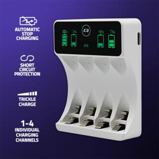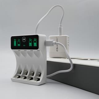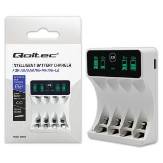 Ładowarka Qoltec do akumulatorków Ni-MH typu R03 AAA R6 AA | LCD | Kabel USB-C | Biała