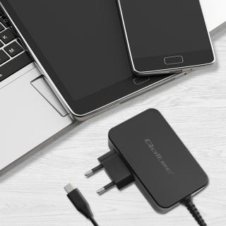 Ładowarka sieciowa Qoltec GaN POWER PRO | 1xUSB-C | 90W | 5-20V | 3-4.5A | Czarna