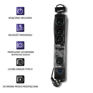 Listwa zasilająca antyprzepięciowa Qoltec 6 gniazd 1,8m