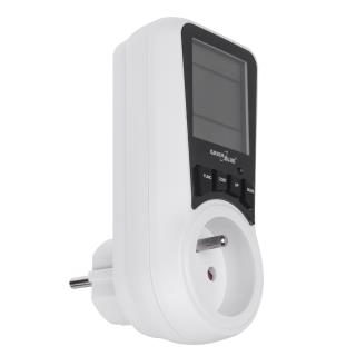 - Wyświetla pobór mocy, zużycie prądu i napięcia oraz przeliczenie na koszt