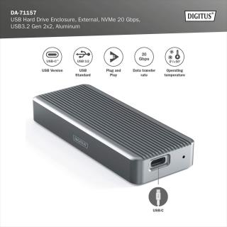 Obudowa DIGITUS USB 3.2 Typ C na dysk SSD M.2 NVMe 20Gbps aluminiowa