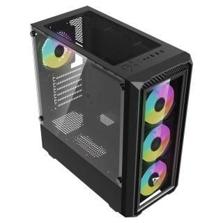 - Zawiera 4 wentylatory RGB 120 mm (3 z przodu, 1 z tyłu).