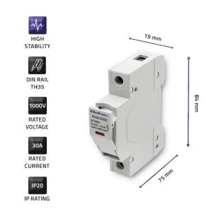 Podstawa bezpiecznikowa Qoltec z diodą + bezpiecznik DC | 1P | 1000V | 30A | 10x38 | solar