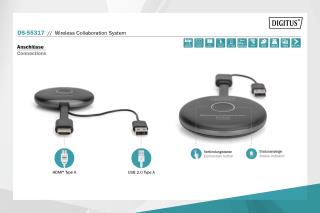 - Złącza transmitera (nadajnika): 1x USB-A, wtyk – do podłączenia do notebook
