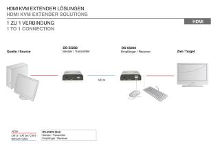 Przedłużacz/Extender DIGITUS KVM HDMI+USB 120m po Cat.6 UTP/IP 1080p FHD 60Hz audio (zestaw)