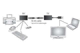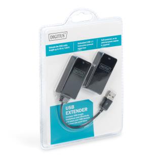 Przedłużacz/Extender DIGITUS USB 1.1 po skrętce Cat.5e/6 UTP/SFP do 45m, czarny, 20cm