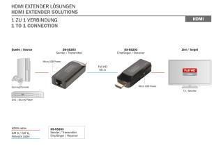 Przedłużacz/Extender mini DIGITUS HDMI 50m po skrętce Cat.6 1080p 60Hz FHD HDCP 1.2 audio (zestaw)