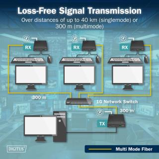 - Maks. Zasięg jednomodowy (SM) do 40km, wielomod (MM) do 300m - punkt-punkt