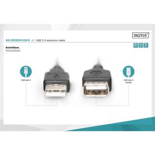 Przedłużacz USB 2.0 DIGITUS A/M - A/Ż, 1,8m, czarny