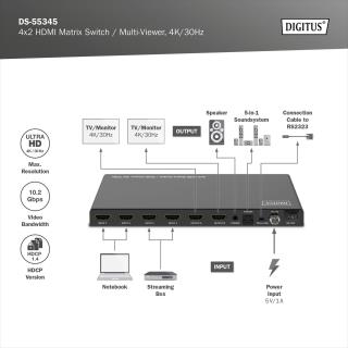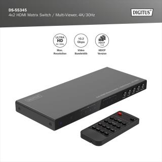 Przełącznik/Matrix DIGITUS HDMI 4/2-porty 4K/30Hz UHD HDCP 1.4 audio z pilotem