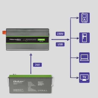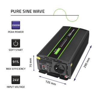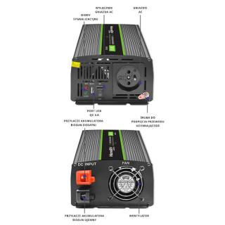 Przetwornica napięcia Qoltec Monolith | 1000W | 2000W | 24V na 230V | Czysty Sinus