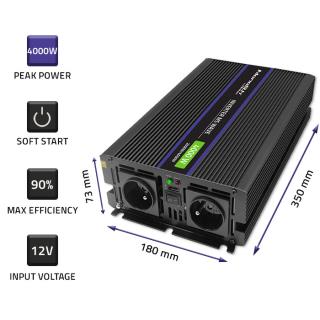 Przetwornica napięcia Qoltec Monolith 4000 MS Wave | 12V na 230V | 2000/4000W | USB