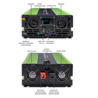 Przetwornica napięcia Qoltec Monolith | ładowanie baterii | UPS | 2500W | 5000W | 12V na 230V | Czysty Sinus | LCD
