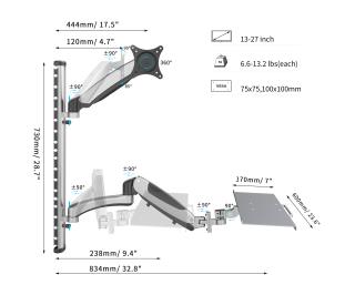- Do monitorów do 69cm (27 cali) o maksymalnej wadze do 8kg
