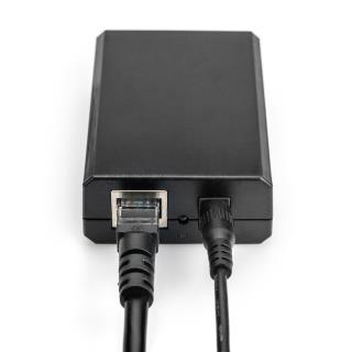- Wyjście: RJ45 (dane) + wyjście DC