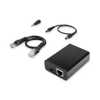 - Rozdziela napięcie wejściowe 48V DC przez kabel RJ45 na różne napięcia wyj.