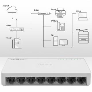 Switch niezarządzalny Qoltec przełącznik sieciowy 8 x port RJ45 | 1000Mbps | Fast Ethernet | LAN