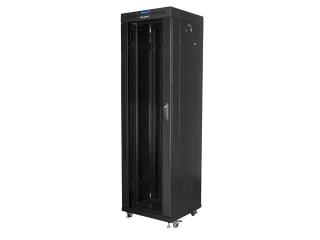 Szafa instalacyjna Rack stojąca 19" 42U 600x600 czarna drzwi szklane LCD Lanberg (flat pack)
