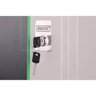 Szafa sieciowa wisząca jednosekcyjna DIGITUS Dynamic 19" 9U, 600x450, drzwi szyba, szary, niezmontowana, 60kg
