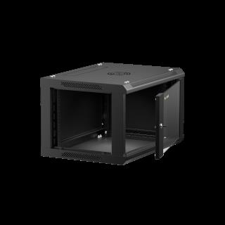 Szafa wisząca 19" Netrack, 6U/600x450mm – czarny, drzwi szklane, otwierane boki