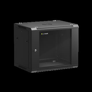 Szafa wisząca 19" Netrack, 9U/600x450mm – czarny, drzwi szklane, otwierane boki