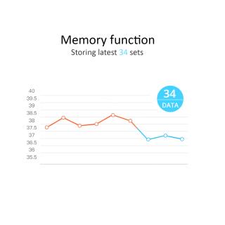 - Zakres pomiarowy: Tryb temperatury ciała: 34 ~42,9°C