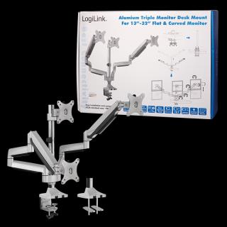 Uchwyt biurkowy LogiLink BP0052 na 3 monitory LCD/LED VESA 100x100, 13-32" aluminium