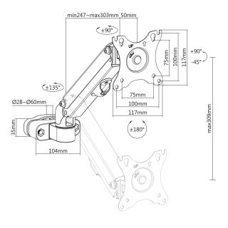 Uchwyt monitora na rurkę / słupek 28-60mm Maclean MC-459 17-27'' 7kg max sprężyna gazowa