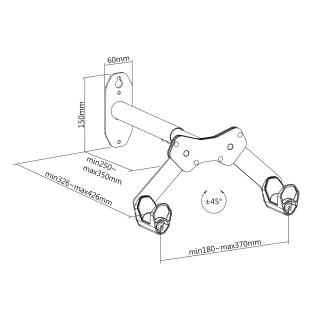 Regulacja rozstawu ramion: 45°