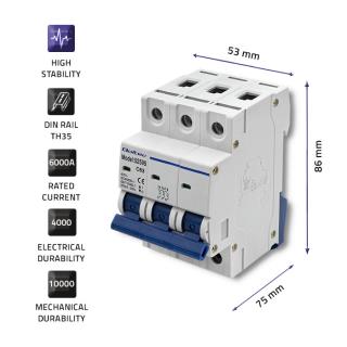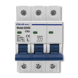 Wyłącznik nadprądowy Qoltec C63 | bezpiecznik | AC | 63A | 3P