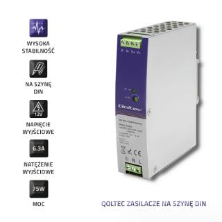 Zasilacz na szynę DIN Qoltec przemysłowy | 75W | 12V | 6.3A