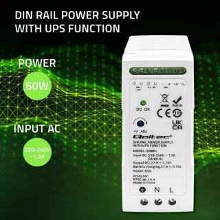 Zasilacz Qoltec na szynę DIN z funkcją UPS | 60W