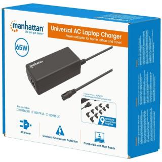 Zasilacz sieciowy Manhattan do laptopa 65W/4A 15-20V 9 wtyków DC